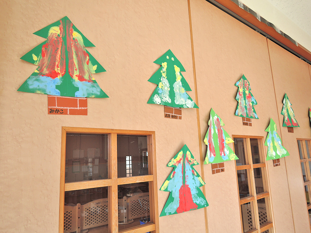 園のあちらこちらに子ども達が作ったクリスマスの飾りがあるので、
